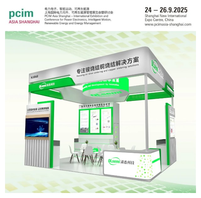 在2025年9月24日至26日于上海新国际博览中心(N4、N5馆)举办的PCIM Asia Shanghai 2025展会上,清连科技董事长贾强将携 “功率器件全烧结方案与挑战” 的专题演讲亮相,分享公司在纳米银、纳米铜烧结技术领域的最新产业化进展。