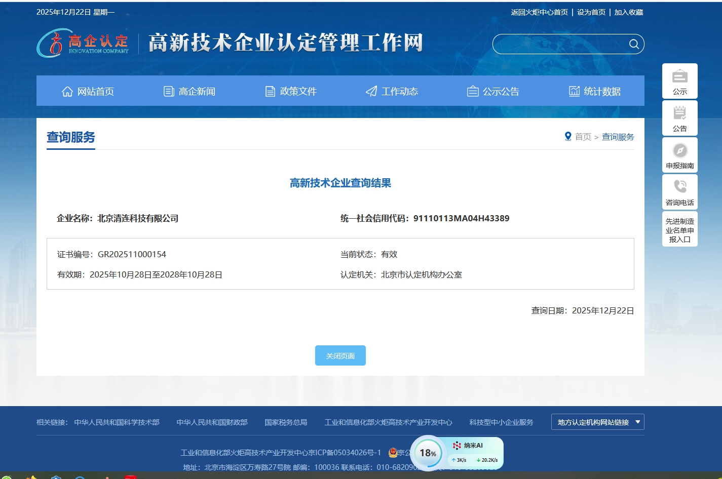 近日,经北京市经济和信息化局与北京市认定机构办公室严格评审与公示,清连科技凭借其在半导体封装领域的深厚技术积累、持续创新能力与卓越市场表现,成功入选北京市专精特新企业名单,并同步获得国家高新技术企业的权威认证。这标志着公司在技术创新体系、专业化程度、精细化管理和特色化发展等方面获得了国家层面的高度认可。